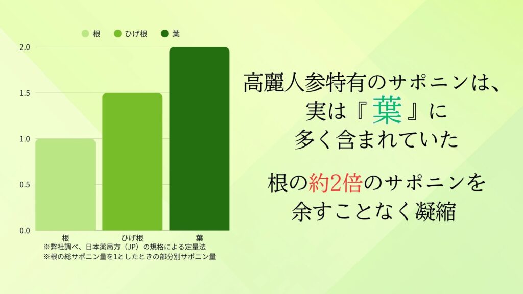 研究を深めるうち、私たちは市場のサプリメントに対する見過ごせない真実に気づきます。それは、市場の製品の多くが、輸入された高麗人参の「根」の部分のみを使用しているという事実です。