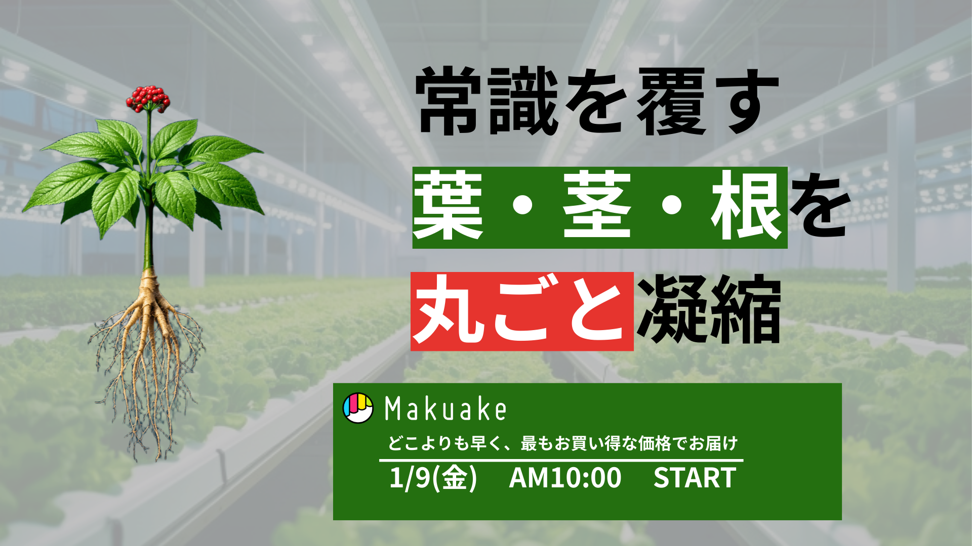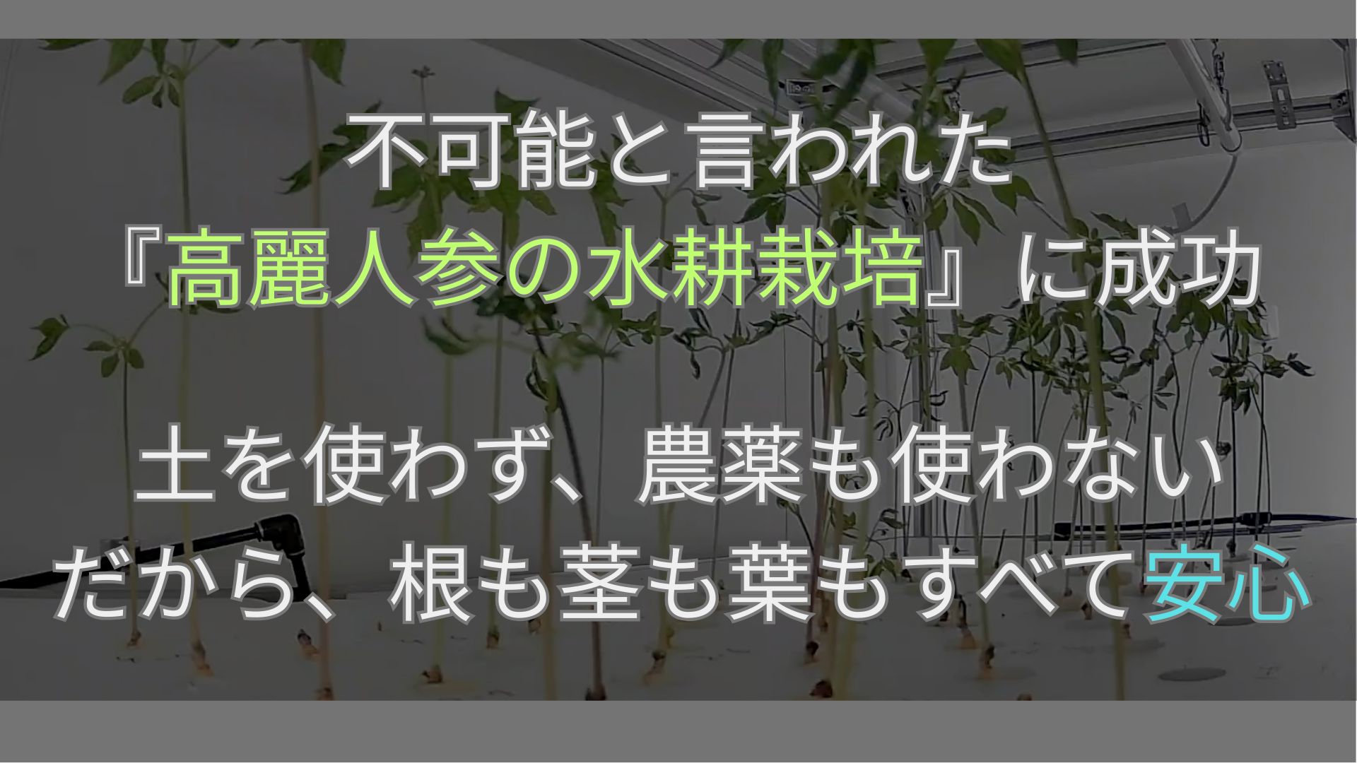私たちが今回お届けするのは、10年近くにわたる研究成果と、常識を覆した栽培技術の集大成です。高麗人参は水耕栽培が不可能とされていましたが、私たちは独自の培養システムを開発。最適な環境をデジタル管理し、期間を大幅に短縮。すべての部位に有用成分が高含有された質の高い高麗人参を安定供給可能にしました。